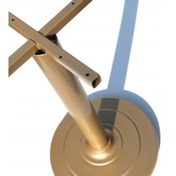 Base pedestal para mesa Dorada Bistró Circular disco de 50 cm, fabricada en base disco de fundición, con poste de 3″ de diámetro con cruceta superior en perfil de 1×1″, todo terminado en pintura elelctroestica color dorado “viejo”.