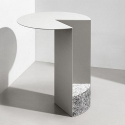 Mesa sobre diseño para restaurante Linea Concepto. Mesa fabricada en placa de Krion de 1/2″ en resina acrilica, acabado mate, con contrapeso en concreto o madera.