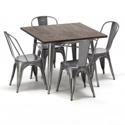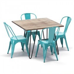 Paquete de 4 sillas tolix en color a elegir y mesa de 75×110 cm, con patas en tubo rolado doblado, con acabado electro pintado en color negro, cubierta en melamina de 15mm engrosado a 30mm con cantos en pvc de 2mm.