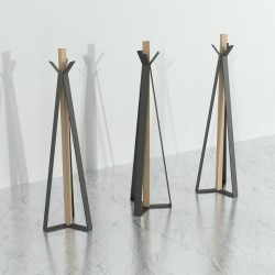 Percheros de pie para restaurantes. Fabricado en barra solida solera de acero de 1/8″ de espesor, doblada y acabado electropinrado color negro, con base en la misma solera.