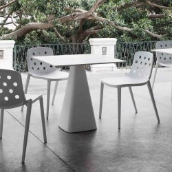 Silla Isidora de plastico, apilable, fabricacion monilitica.